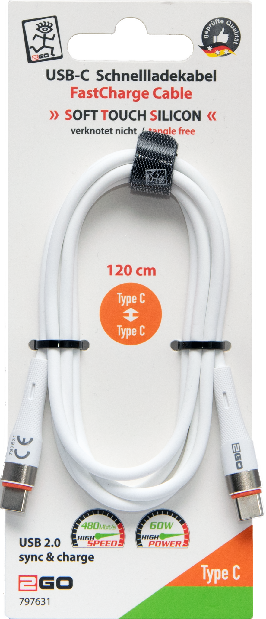 USB Datenkabel "Soft Touch Silicon" - 480 MBps - 60 W - weiß - 120 cm