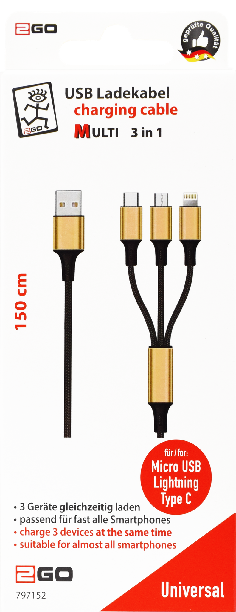 BeschreibungBewertungen Beschreibung lädt bis zu 3 Geräte gleichzeitig an nur einem USB-Ladegerät!maximal 3000mAhochwertige Aluminium Steckertrendige Nylon-Ummantelungkeine DatenübertragungLänge: 150cm Bewertungen Geben Sie die erste Bewertung ab Es liegen keine Bewertungen vor Benutzer, die diesen Artikel gekauft haben, haben auch gekauft 3 in 1 USB Ladekabel - blau - 150cm 3 in 1 USB Ladekabel - schwarz - 300cm 3 in 1 USB Ladekabel - rot - 150cm 2 in 1 USB Datenkabel - weiss - 100cm Universal Wireless Charging Fast-Charger 10W 3 in 1 USB Ladekabel - schwarz - 150cm JBL T110 schwarz JBL T110 weiß Netz-Ladeset 100 V - 240 V (2-teilig) - schwarz Bluetooth Headset "TWS Mini" - weiß 4 in 1 USB / Type C Datenkabel - blau - 120cm Winter Multipack