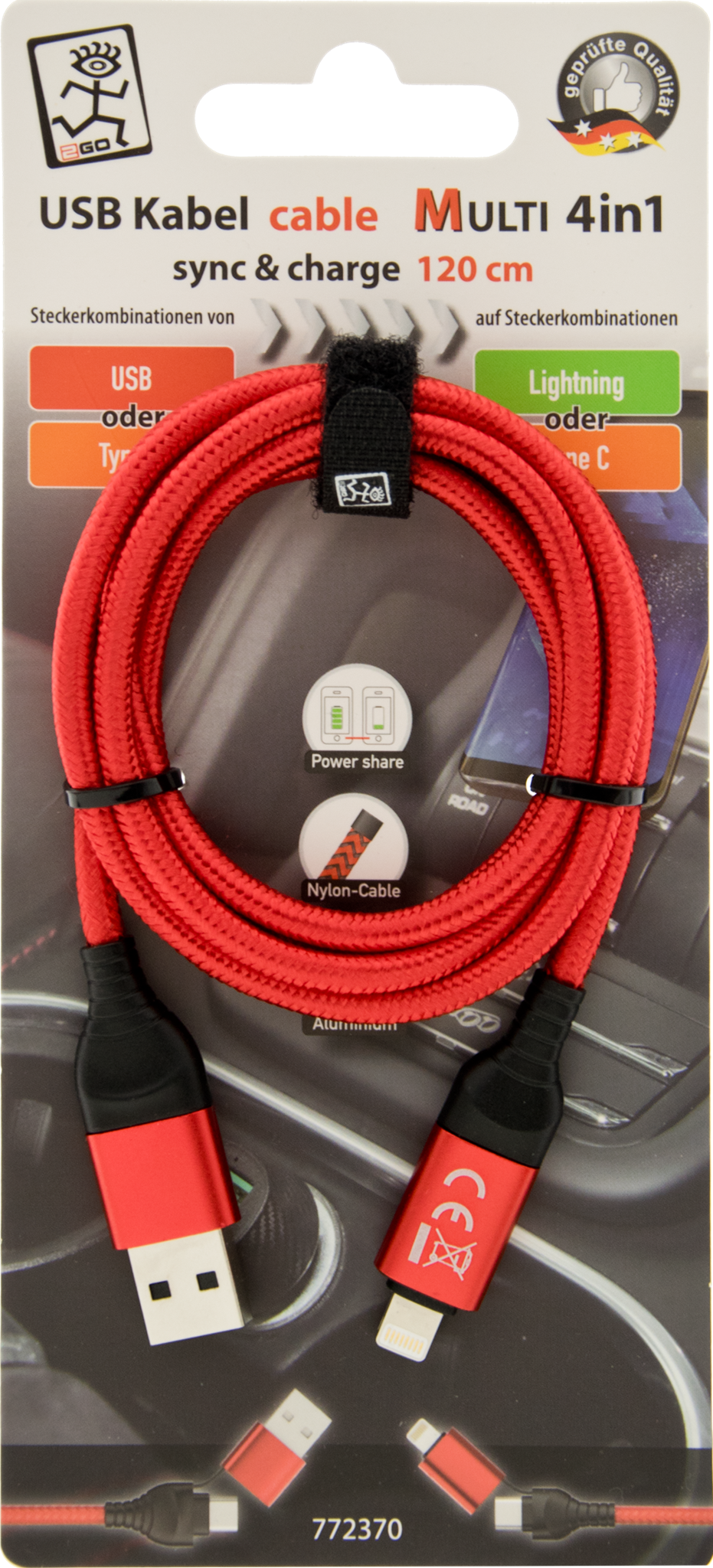 BeschreibungBewertungen Beschreibung Multi-Ladekabelvon USB A oder Type Cfür Lightning oder Type CUnterstützt OTG-Power-ShareSync & Chargehochwertige Aluminium-Steckermit NylonmantelLänge: 120cm Bewertungen Geben Sie die erste Bewertung ab Es liegen keine Bewertungen vor