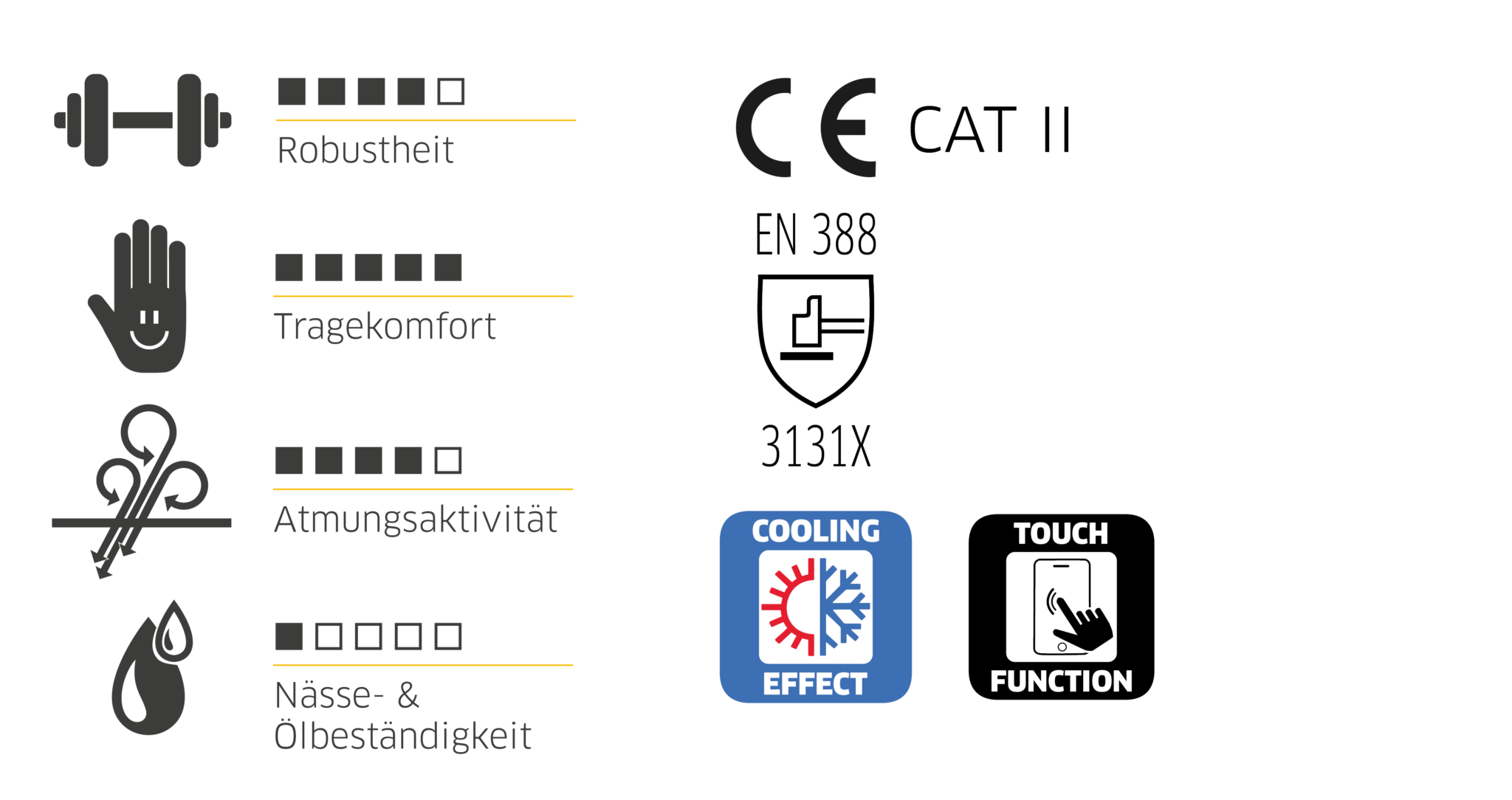 • optimale Fingerfertigkeit und ein sicherer Griff, auch bei glatten Gegenständen