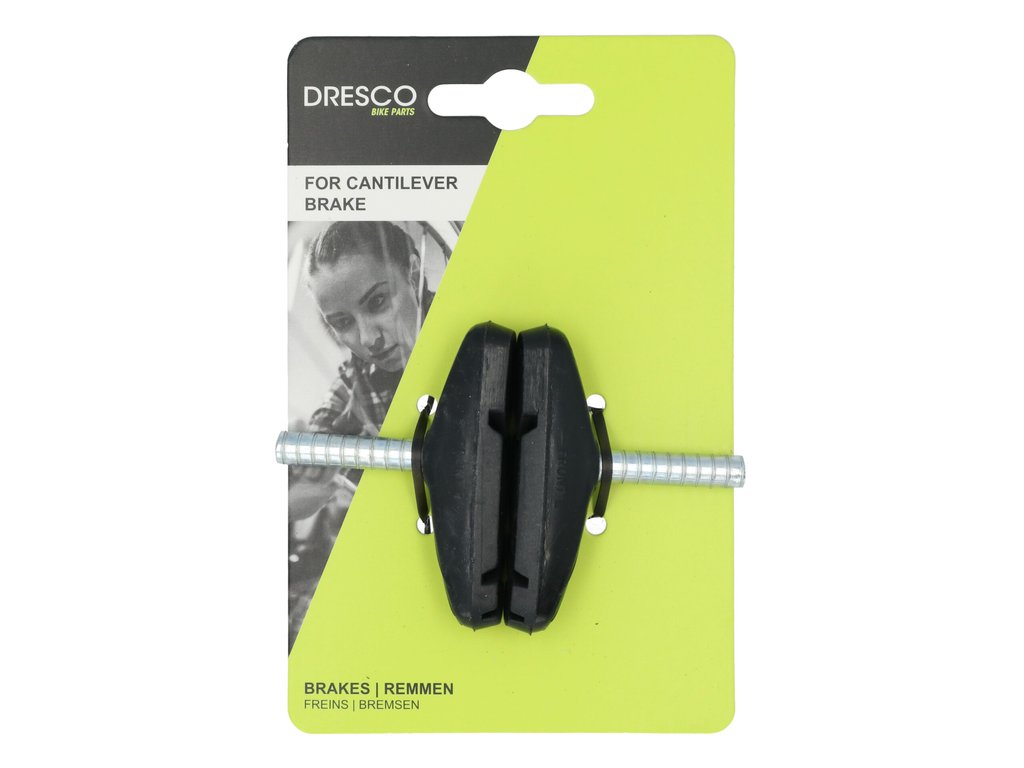 Diese Dresco Bremsschuhe eignen sich für Fahrräder mit Cantilever Bremsen, die oft an Mountainbikes und Fahrrädern mit breiteren Fahrradreifen zu finden sind. Die Cantilever Bremsschuhe mit Stift sind für die Vorder- oder Hinterradbremse geeignet. Der Stift wird in die Befestigungsschraube der Cantilever Bremse geklemmt. Die Bremsschuhe haben eine starke Bremskraft bei trockenen und nassen Wetterbedingungen. Die Bremsschuhe werden paarweise geliefert.