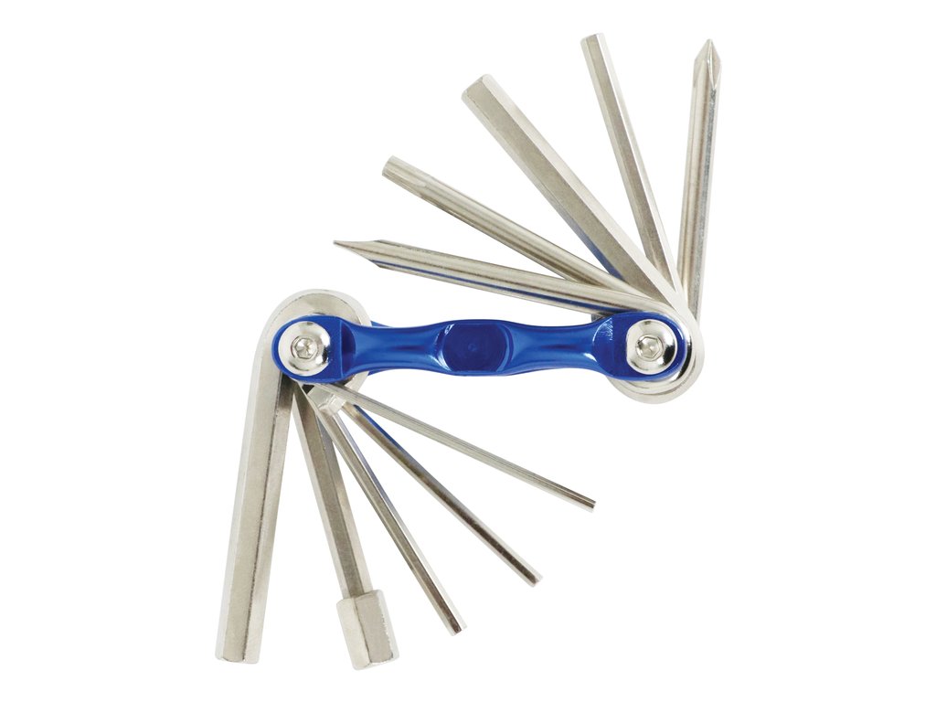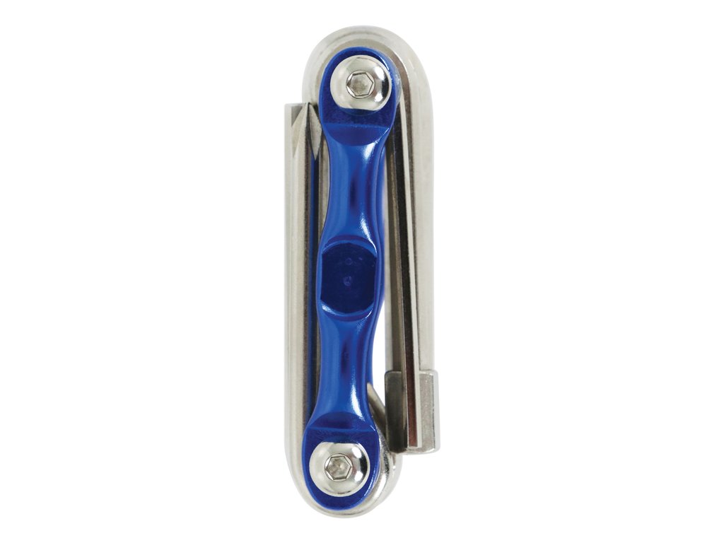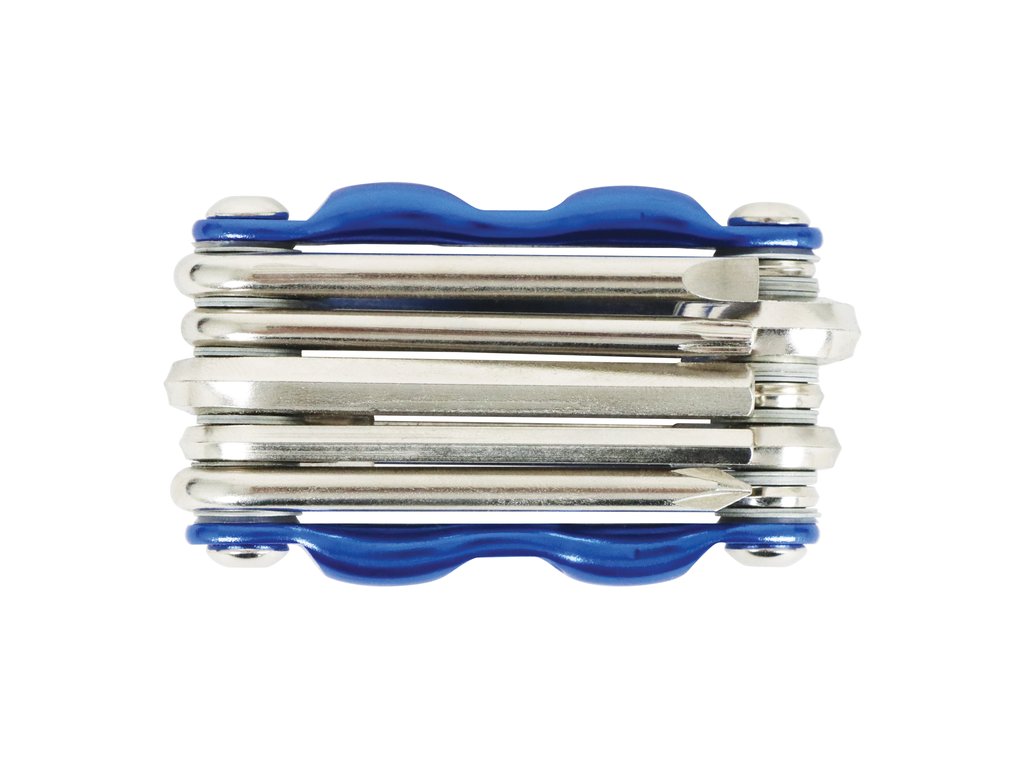 Dieses kompakte 11-teilige Multitool ist speziell für die Wartung und Reparatur von Fahrrädern unterwegs konzipiert. Das praktische Griffmodell enthält IInnensechskantschlüsseln in den Größen 2 / 2 ½ / 3 / 4 / 5 / 6 / 7 und 8 mm. Außerdem verfügt dieses Multitool über einen Kreuzschlitz- und einen Schlitzschraubendreher sowie einen Torx 25-Schraubendreher. Durch seine kompakte Größe lässt er sich leicht auf Fahrradtouren mitnehmen.