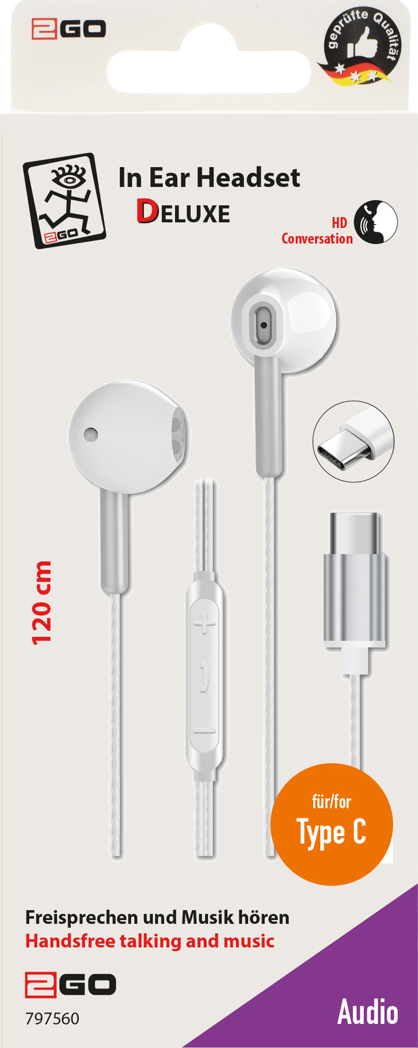 mit USB Type-C Stecker, Rufannahmetaste & Lautstärkeregelung