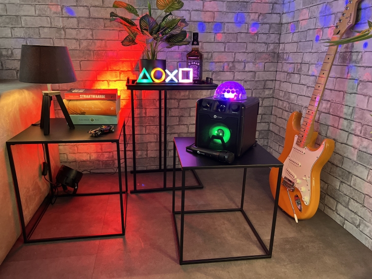 Der Disco Block 410 ist ein leistungsstarker, leichter Bluetooth-Lautsprecher, den Sie überallhin mitnehmen können. Mit der eingebauten Discokugel und dem Akku, der bis zu 4 Stunden hält, können Sie jeden Ort in einen Partyraum verwandeln. Die maximale Leistung von 50 Watt reicht aus, um einen großen Raum zu beschallen. Sie können Musik über Bluetooth, USB oder Micro-SD abspielen. Zusammen mit dem mitgelieferten Mikrofon können Sie z. B. eine Karaoke-Party veranstalten, eine Präsentation halten, eine Geschichte vorlesen oder eine Performance machen.