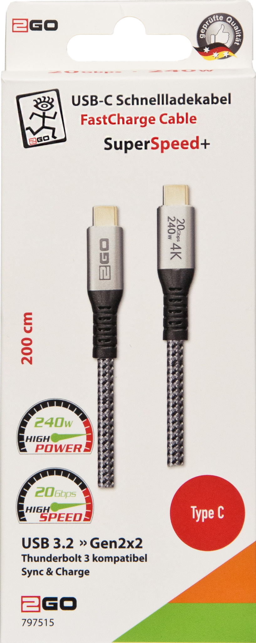 USB Datenkabel - High Speed - 20 GBps - 240 W - 200 cm