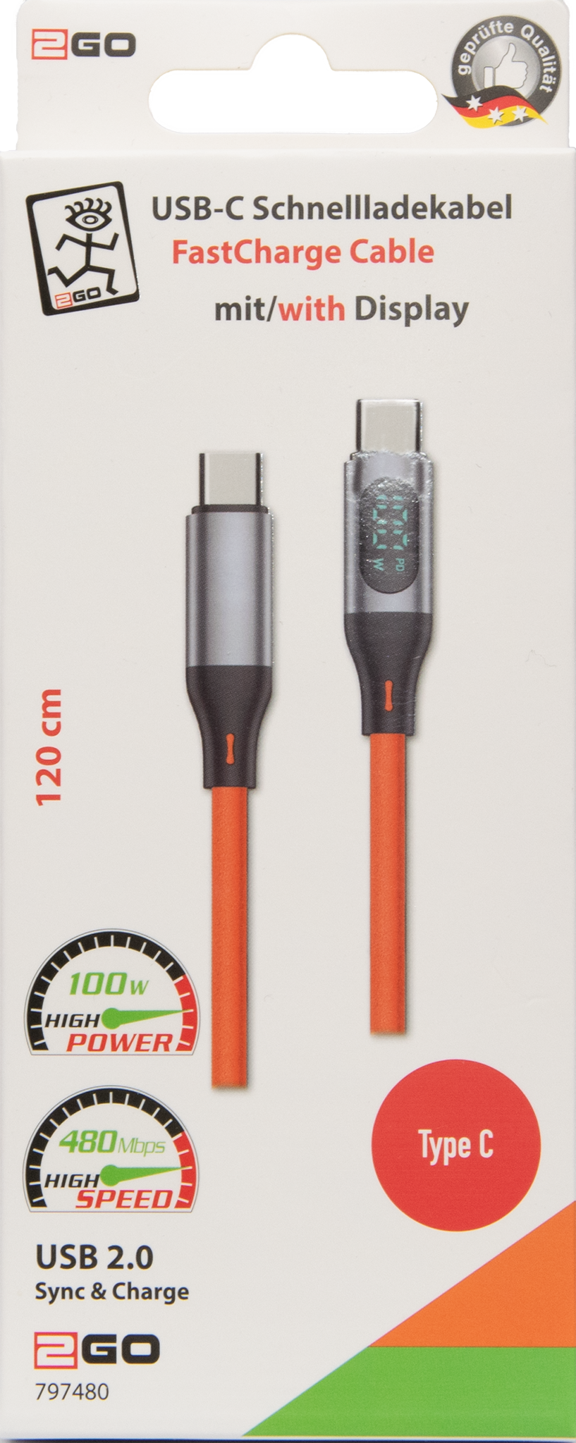USB Datenkabel "Soft Touch Silicon" - 480 MBps - 60 W - orange - 120 cm