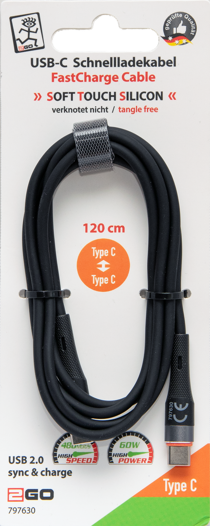 USB Datenkabel "Soft Touch Silicon" - 480 MBps - 60 W - orange - 120 cm